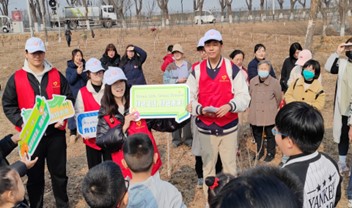 外国语学院的师生党员志愿者与参加植树活动的家庭结对栽种象征“英雄精神”的海棠树苗,悬挂手绘生态宣言标牌,将红色基因融入绿色行动;植树活动中,外国语学院师生充分发挥专业优势,通过汉、英、日、法、德五种语言现场进行了生动形象的环保科普宣讲。通过多语种生态知识科普环节,深化青年对生态文明的认知。