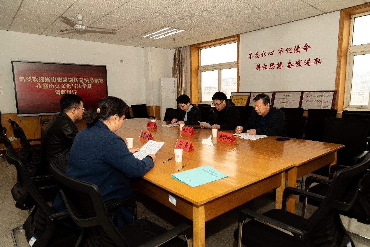 为共同培育新时代高素质法治人才,推进司法实践与法学教育的双向促进与共赢,2025年3月26日,历史文化与法学系与唐山市路南区司法局举行合作共建实习基地签约揭牌仪式。唐山市路南区司法局局长梁仕生、副局长郁青、主任李晓明,历史文化与法学系主任李志伟、副主任王芳出席了该活动。