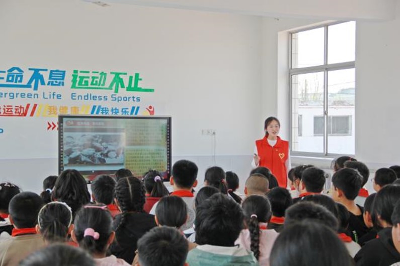 随后,双方共同倾听教育学院烽火志扬宣讲团发挥专业特长,以“理论阐释+情景互动”的创新形式为汤家河镇中心小学师生带来的红色精神宣讲。实习生李欣宜在本环节中担任主讲,其教学设计融入“双导师制”培养特色,获得现场师生高度评价。董慧彬对深入教育一线的实习生表示深切的慰问,希望全体实习生都能在实践锻炼中不断提升教学能力。