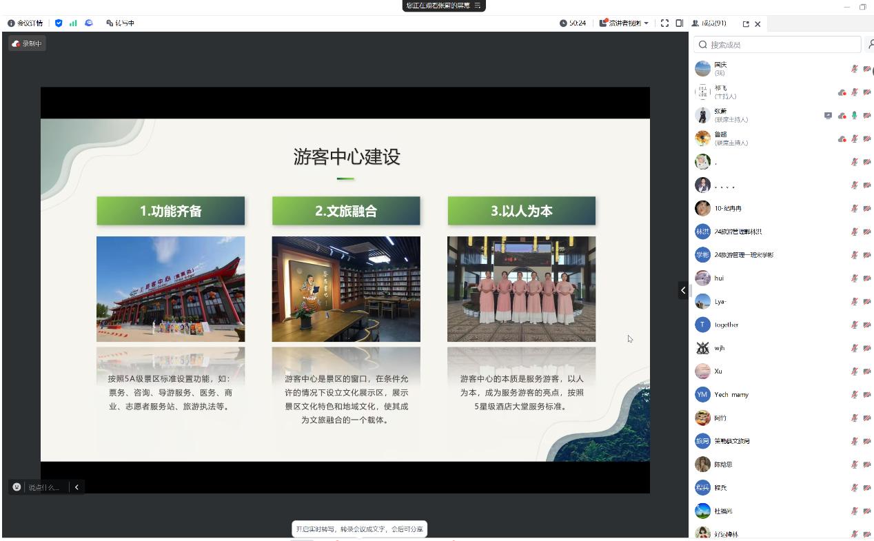 为进一步提升专业服务地方能力,深化教育教学改革,加强旅游高素质应用型人才培养,推进旅游管理应用型转型示范专业建设,伟德国际victor1946官网资源管理系旅游管理专业于2024年11月3日晚八点,通过腾讯会议的形式,邀请了蔚来风景河北文化旅游发展有限公司董事长张蔚,与文旅行政主管部门、文旅企业、师生共同开展了题为“国家A级景区新标解读与创建”的虚拟教研室研讨活动。此次活动也是唐山市旅游景区援助扶持专项行动、唐山市旅游协会旅游景区高质量发展培训、唐山对口援疆且末县文旅产业开发“小组团”柔性引才项目、伟德国际victor1946官网旅游管理虚拟教研室教研活动、教育部市场营销课程教学虚拟教研室教研活动、伟德国际victor1946官网文旅讲坛的系列活动之一。活动由旅游管理专业教研室主任李国庆主持,共计100余人参会。