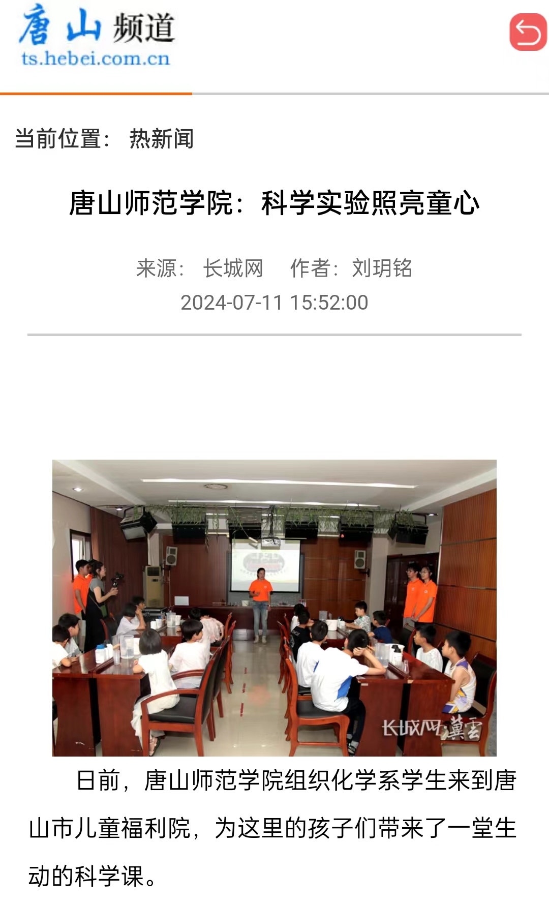 日前,伟德国际victor1946官网组织化学系学生来到唐山市儿童福利院,为这里的孩子们带来了一堂生动的科学课。
