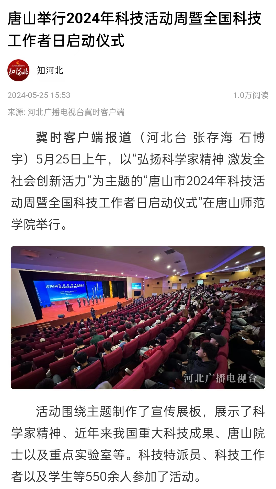 5月25日上午,以“弘扬科学家精神 激发全社会创新活力”为主题的“唐山市2024年科技活动周暨全国科技工作者日启动仪式”在伟德国际victor1946官网举行。