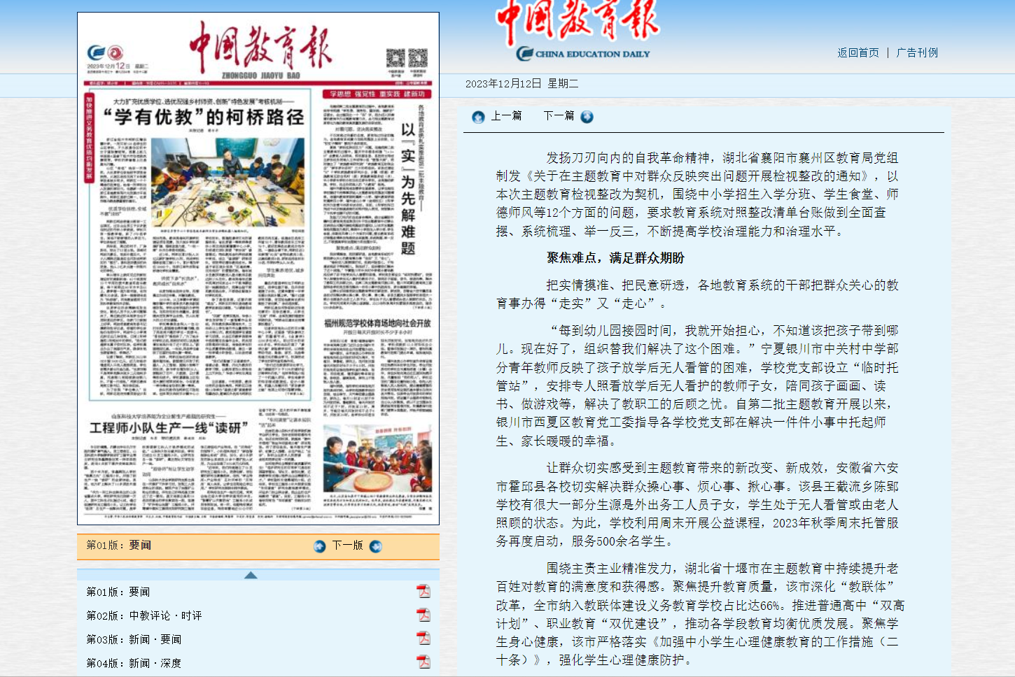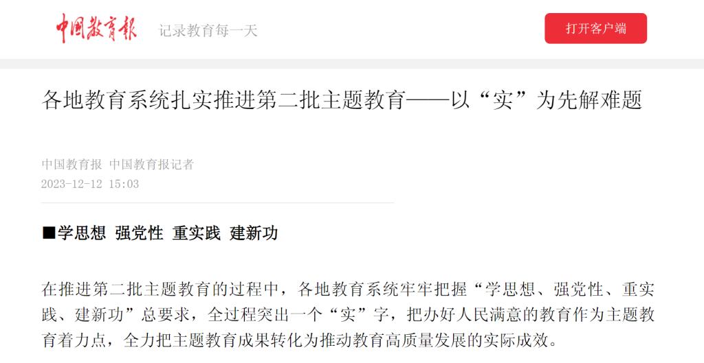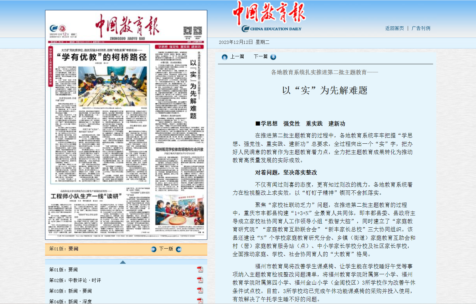 《中国教育报》——各地教育系统扎实推进第二批主题教育——以“实”为先解难题