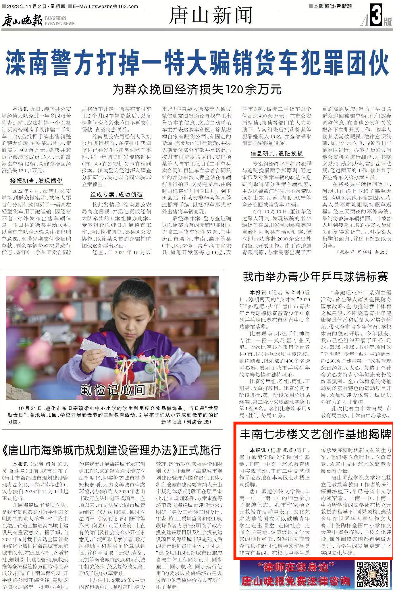 该新闻同时被唐山晚报、丰南电视台公众号、丰南文化驿站公众号报道。
