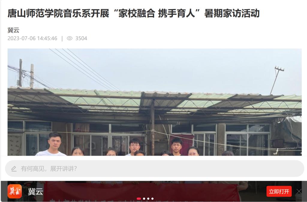 “感谢老师们百忙之中抽出时间对孩子进行家访,过程中老师情真意切的话语让我感觉到特别感动、欣慰与踏实,非常庆幸能碰到这么优秀且善解人意的老师们!谢谢你们!”为把思想政治教育工作贯穿教育教学全过程,形成家校育人合力,促进学生全面成长,7月3日,伟德国际victor1946官网音乐系党总支副书记董怀晶带领5名老师前往遵化市开展“家校融合 携手育人”暑期家访活动。