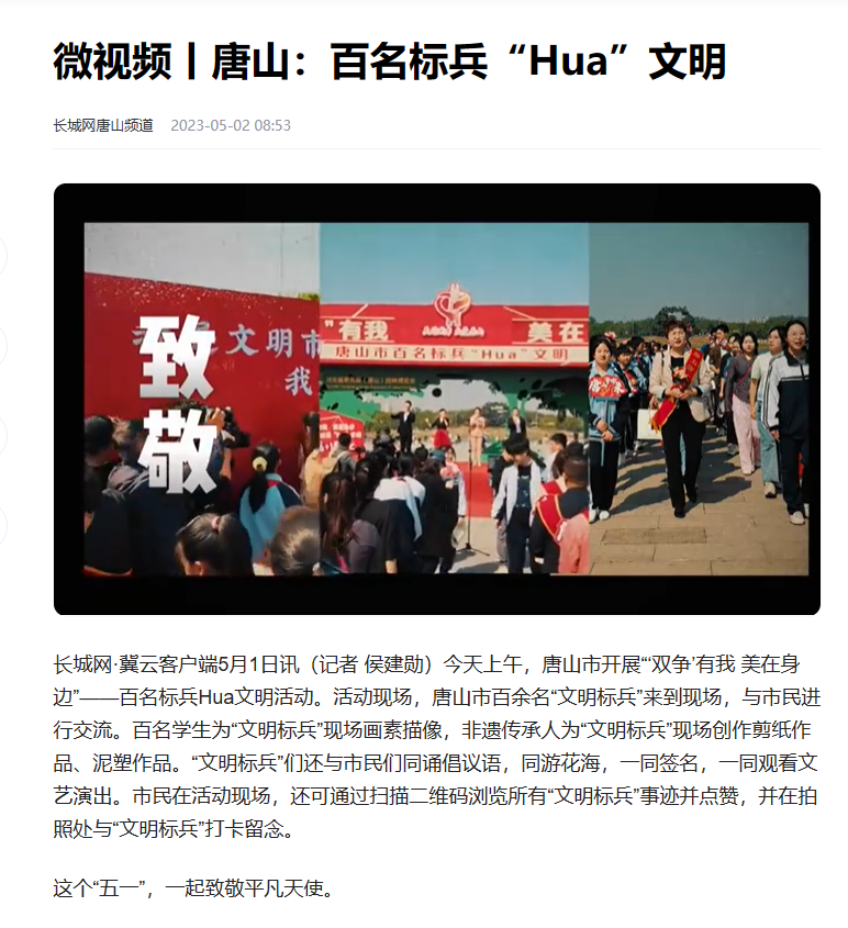 《长城网》——微视频丨唐山:百名标兵“Hua”文明
