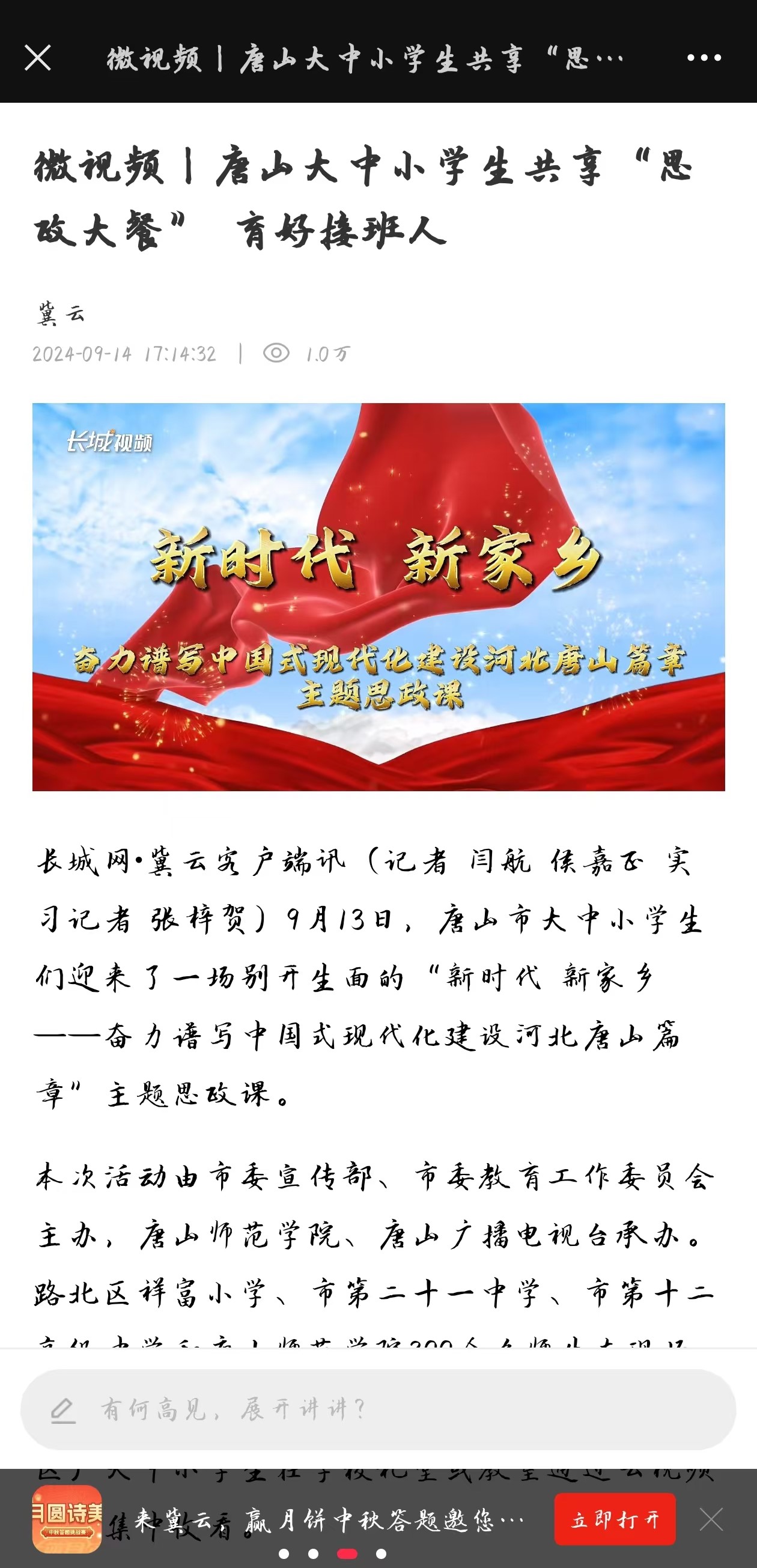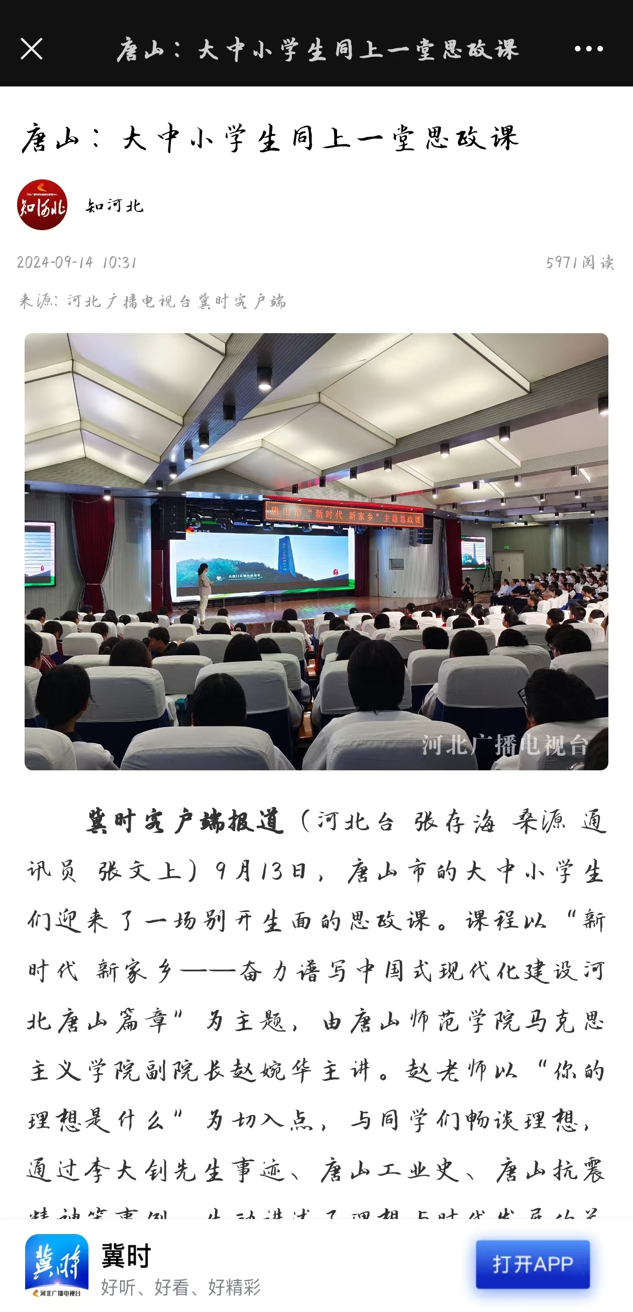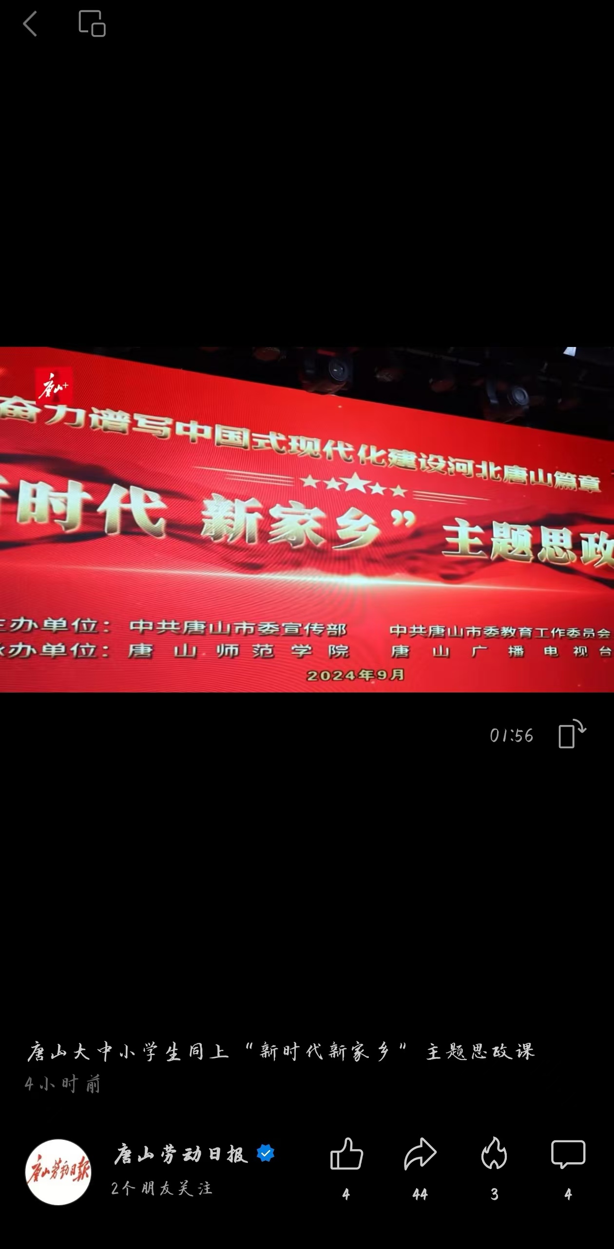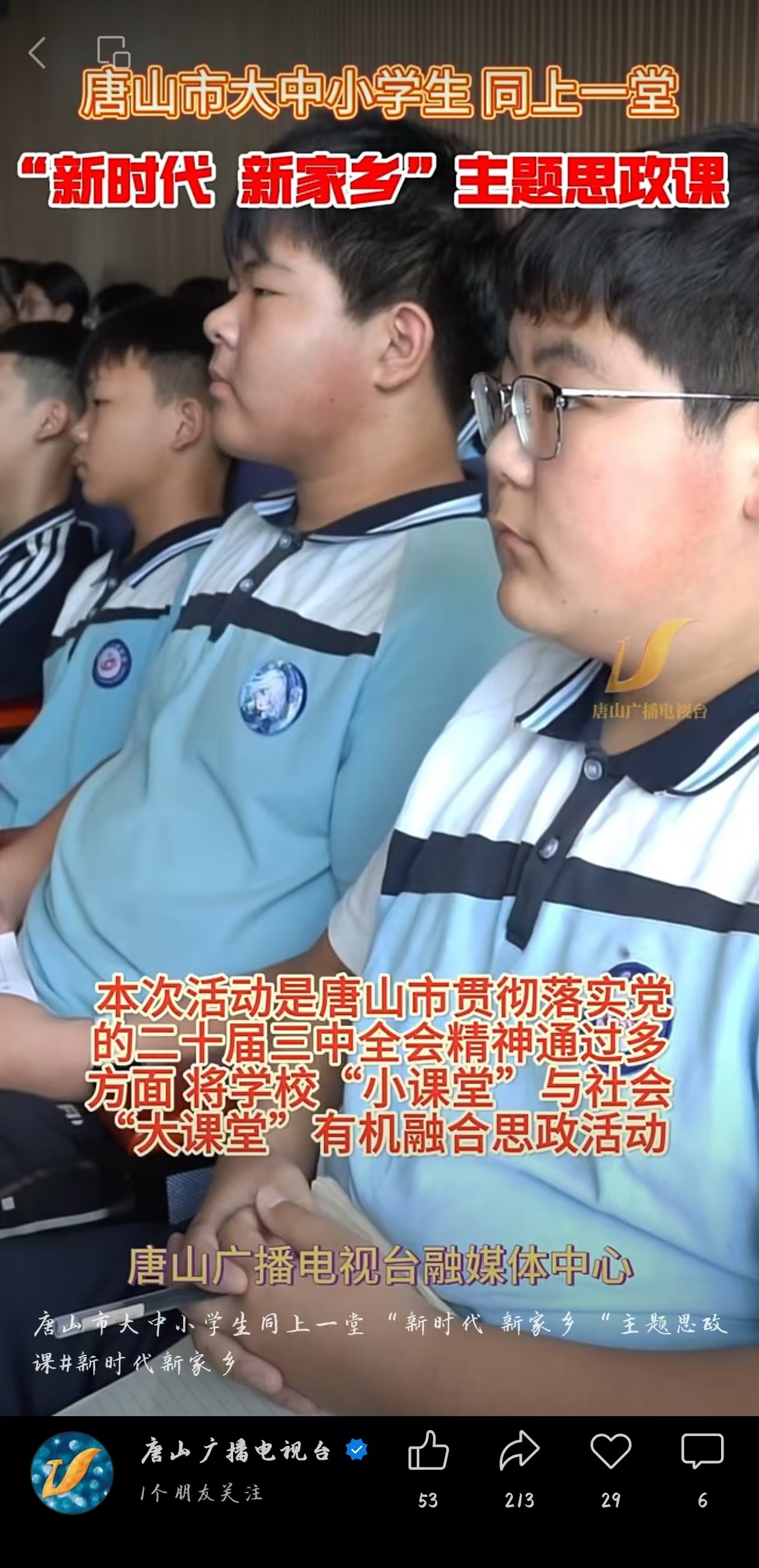 9月13日,我市大中小学生们迎来了一场别开生面的“新时代 新家乡——奋力谱写中国式现代化建设河北唐山篇章”主题思政课。