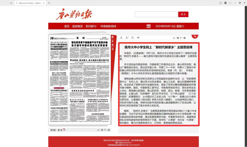 唐山劳动日报:https://epaper.huanbohainews.com.cn/tsldrb/pc/content/202409/14/content_102748.html