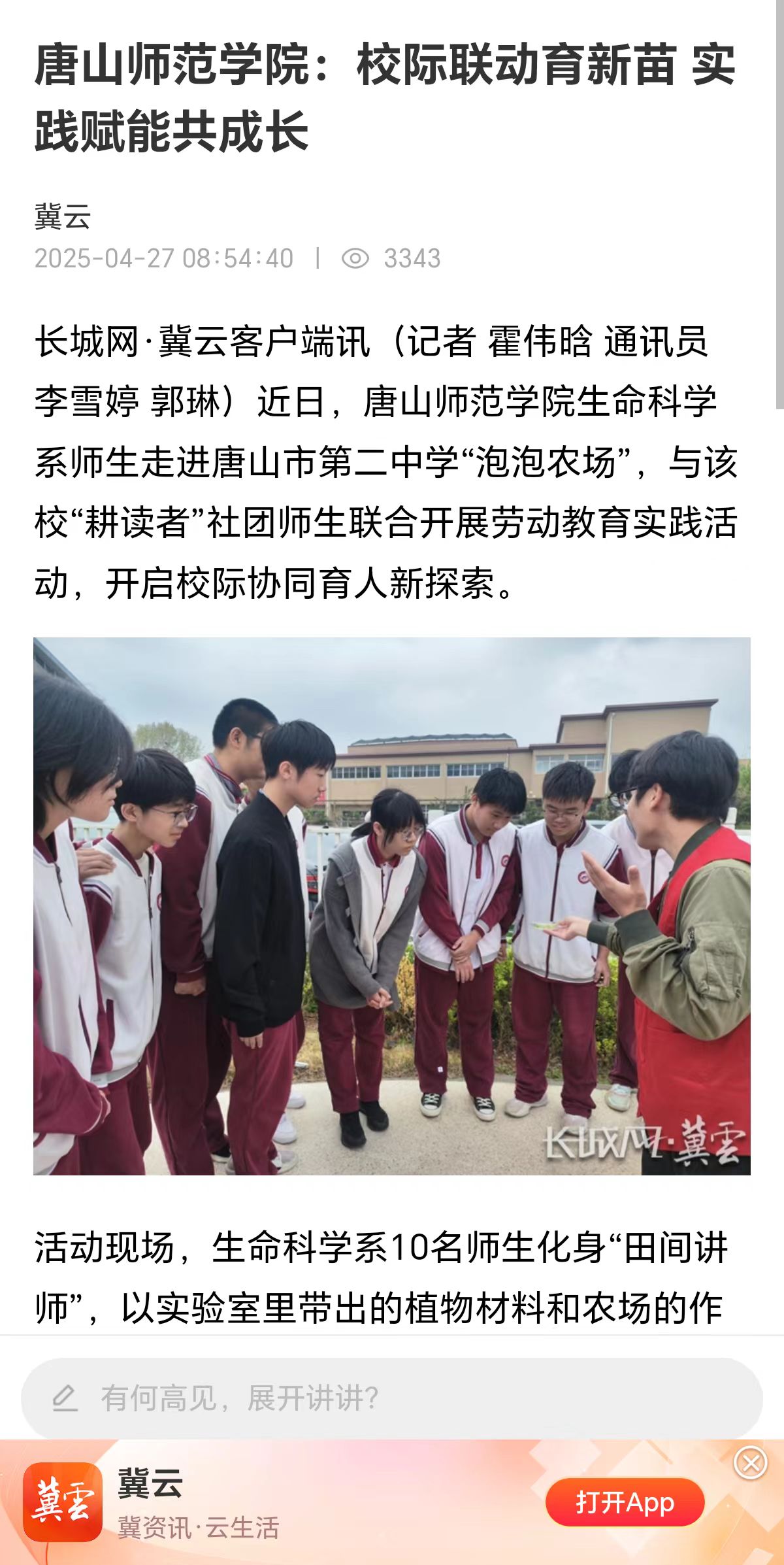 近日,伟德国际victor1946官网生命科学系师生走进唐山市第二中学“泡泡农场”,与该校“耕读者”社团师生联合开展劳动教育实践活动,开启校际协同育人新探索。