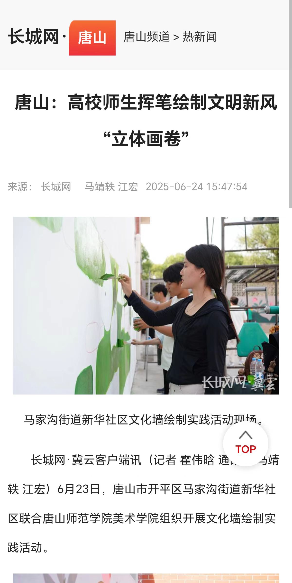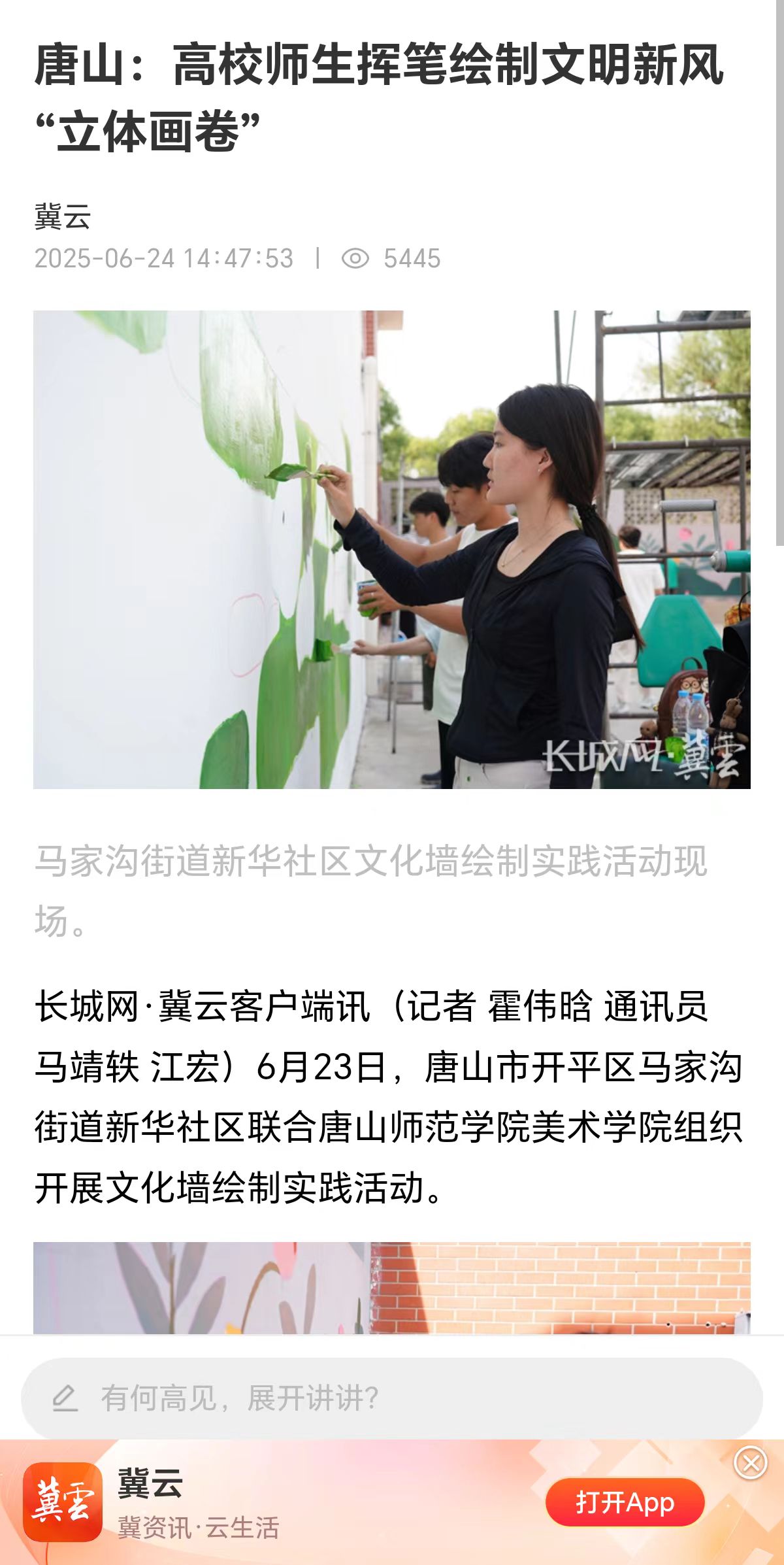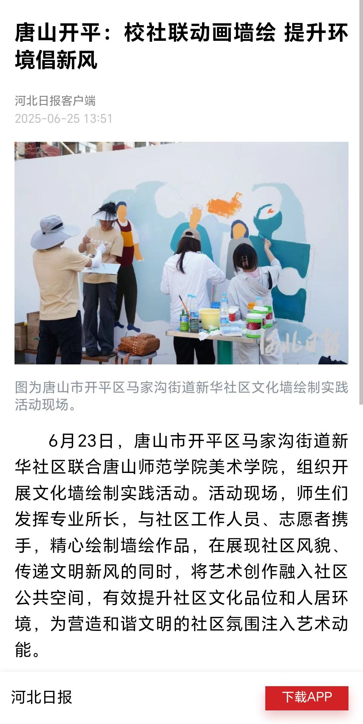 6月23日,唐山市开平区马家沟街道新华社区联合伟德国际victor1946官网美术学院,组织开展文化墙绘制实践活动。