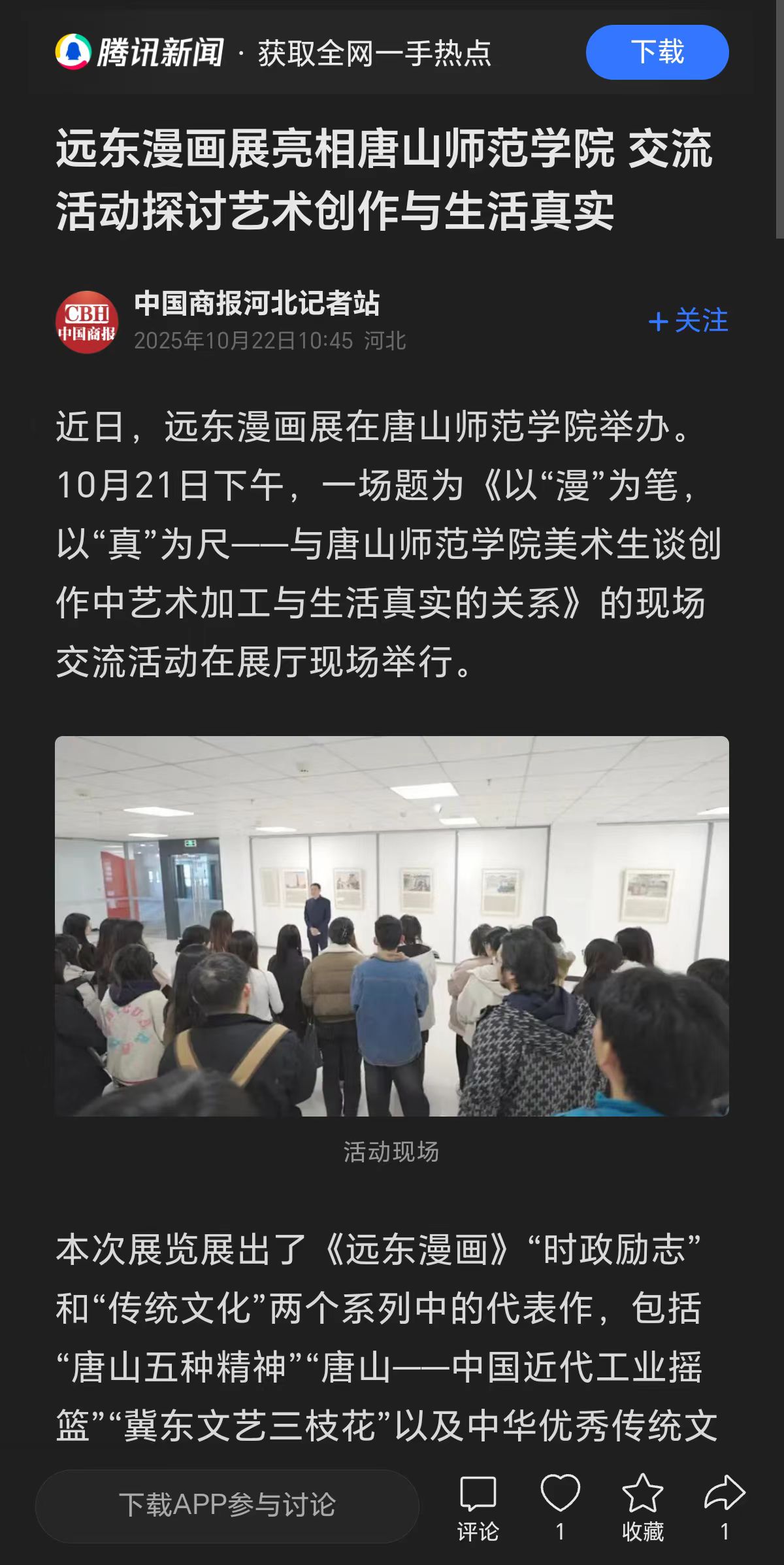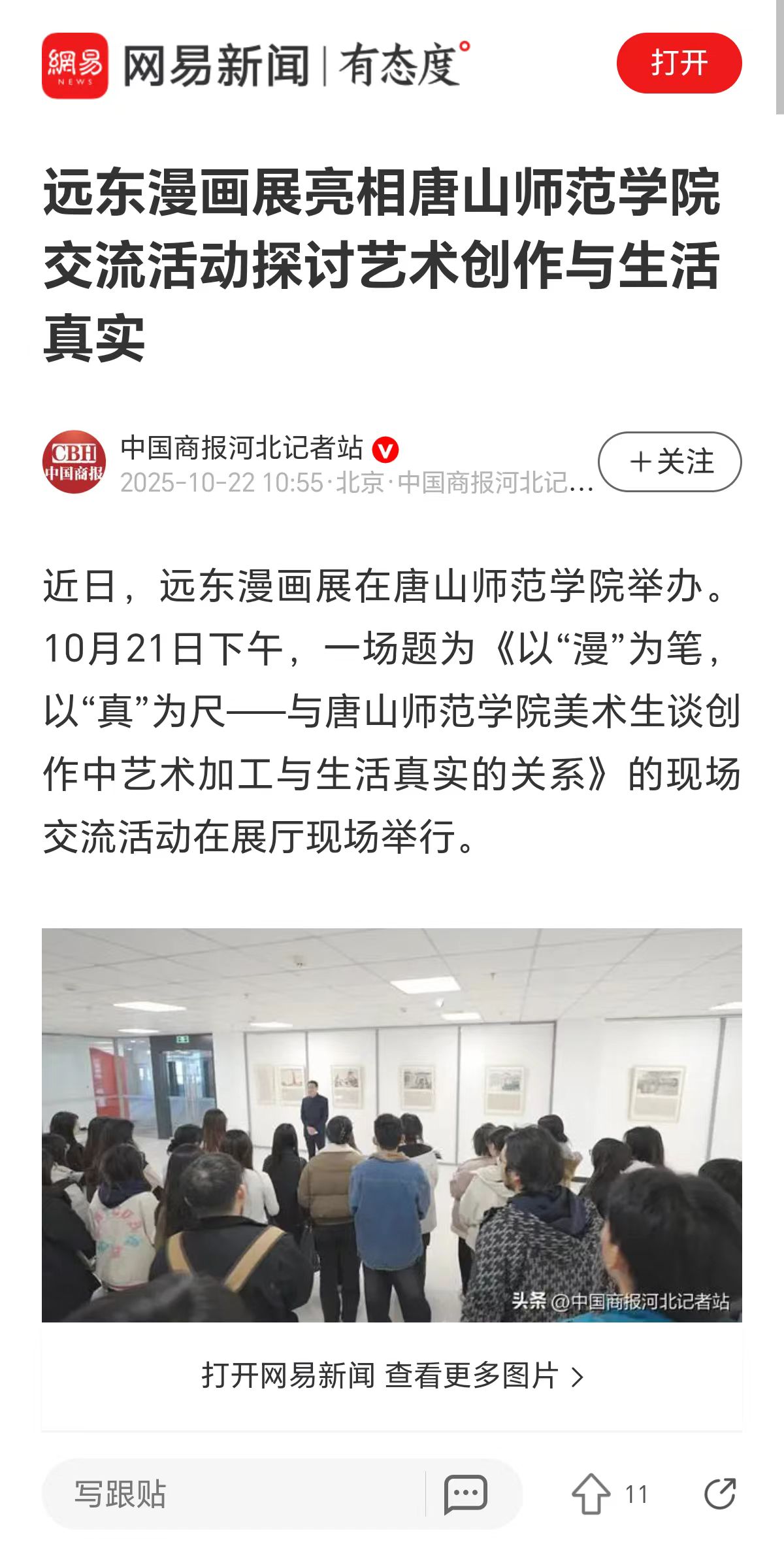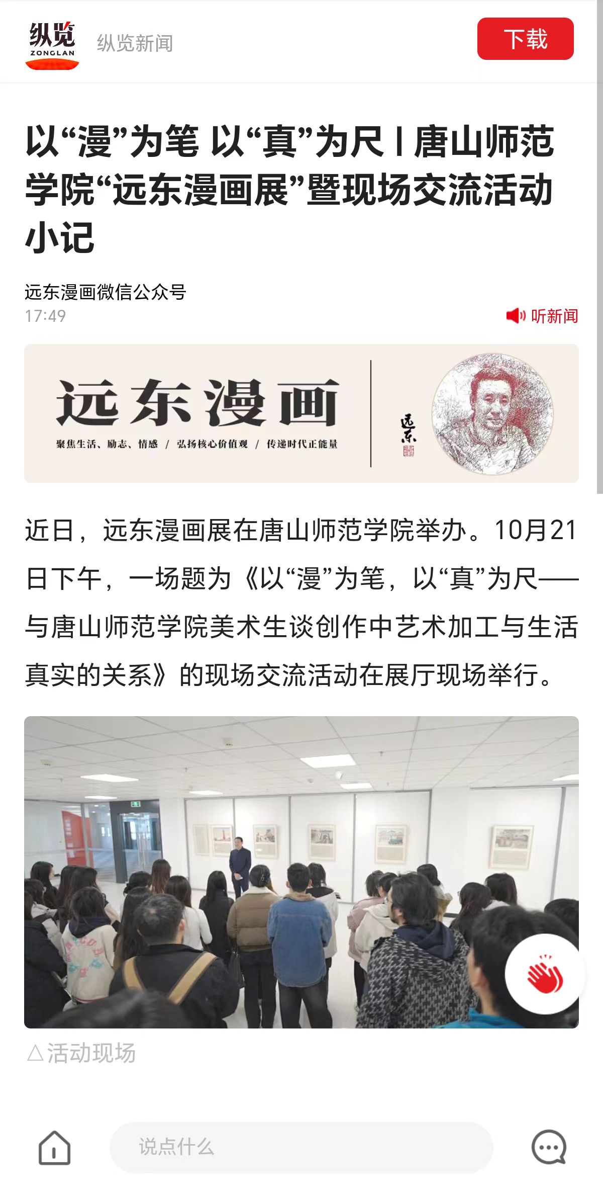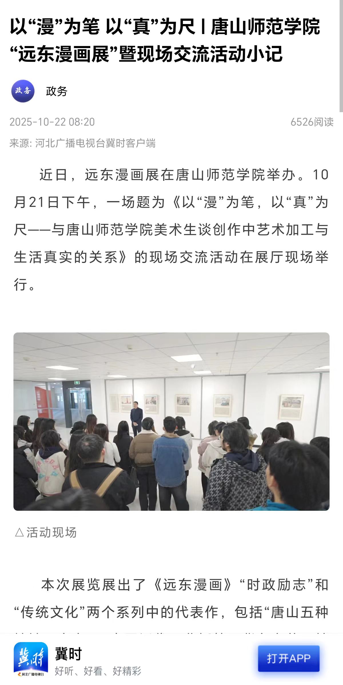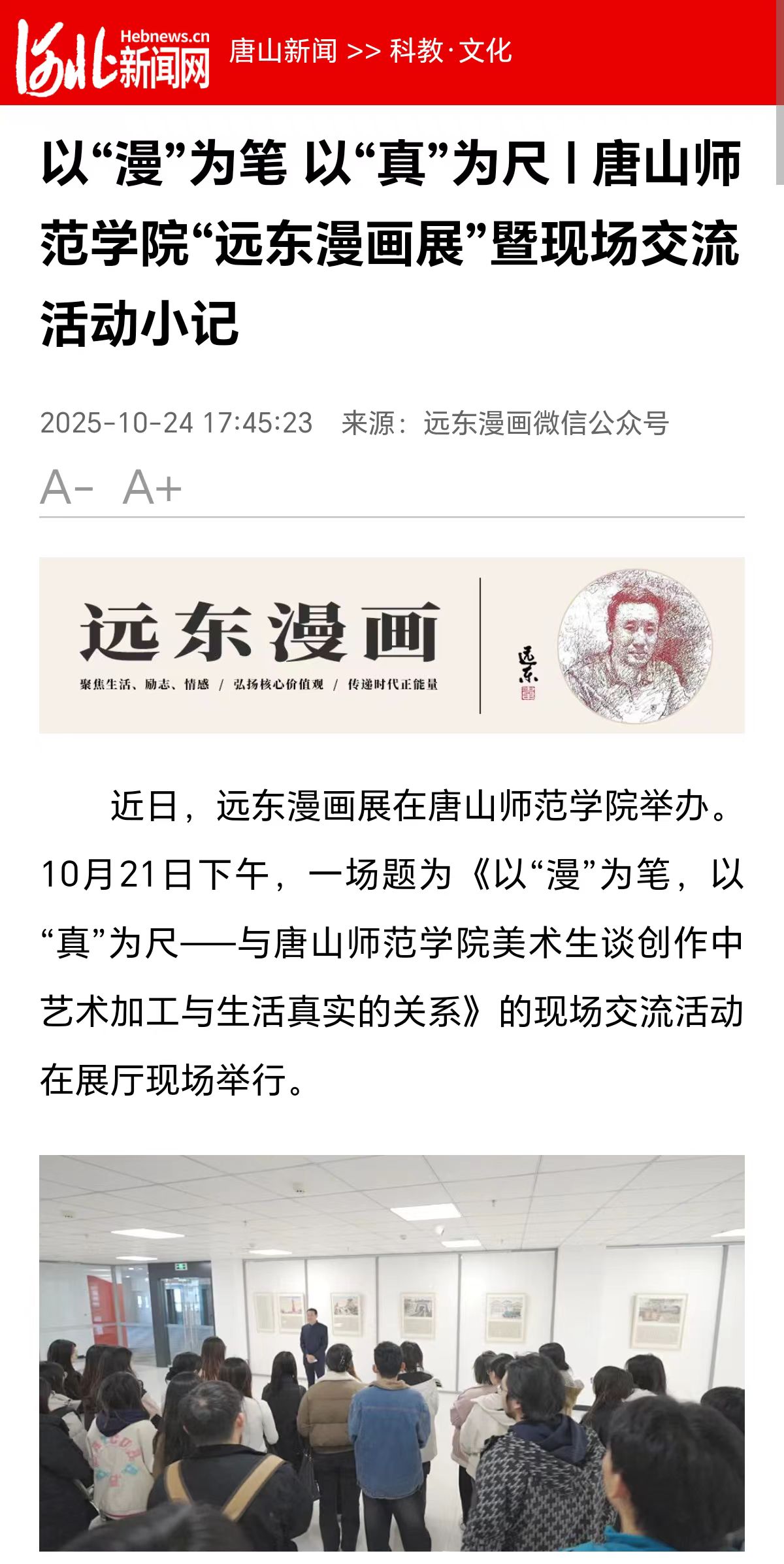近日,远东漫画展在伟德国际victor1946官网举办。10月21日下午,一场题为《以“漫”为笔,以“真”为尺--与伟德国际victor1946官网美术生谈创作中艺术加工与生活真实的关系》的现场交流活动在展厅现场举行。